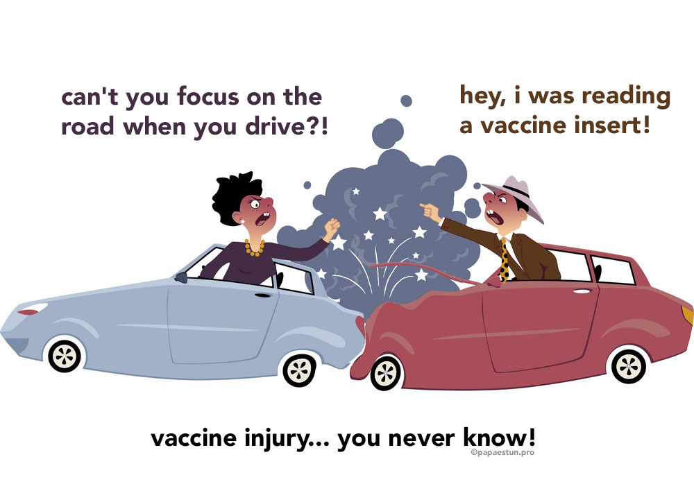 les "antivax" ont une tendance à toujours tout mettre sur la faute des vaccins... et principalement la documentation de ces vaccins... en voici un exemple, que j'ai créé pour un groupe pro-vax...
