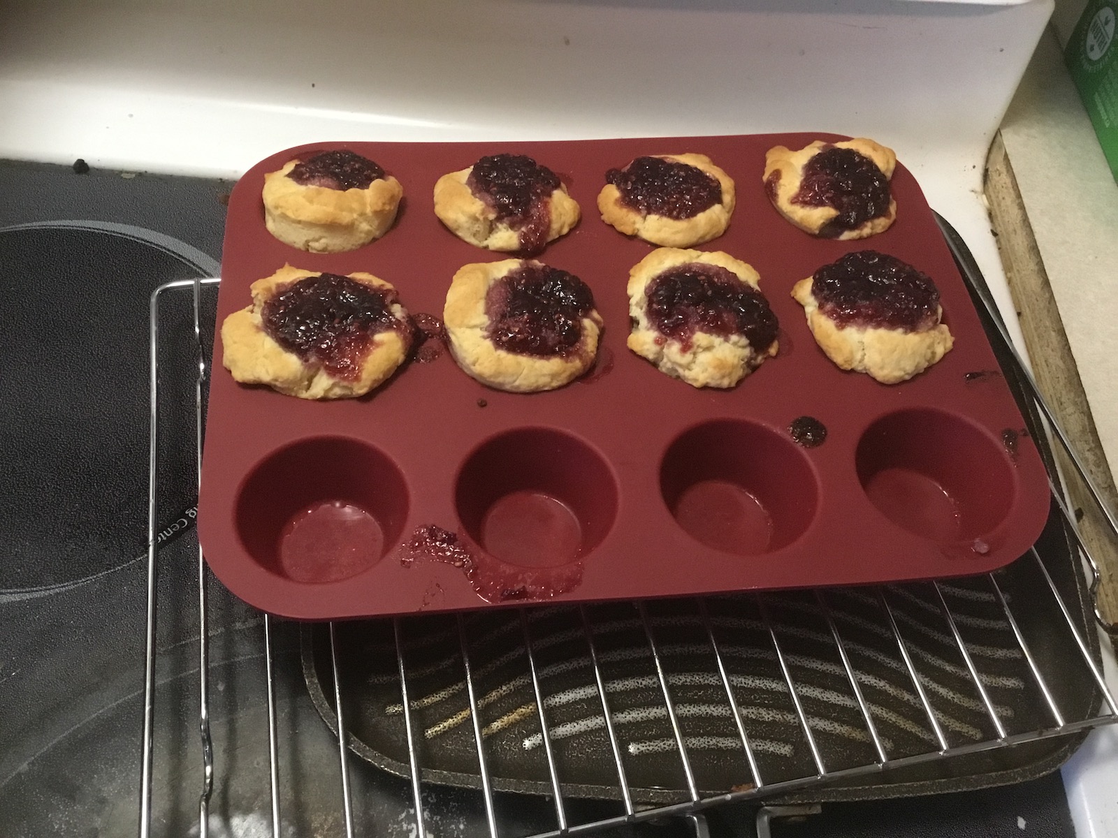 dans le trou formé dans la pâte, ajouter de la confiture de votre choix, ou du nutella, etc…